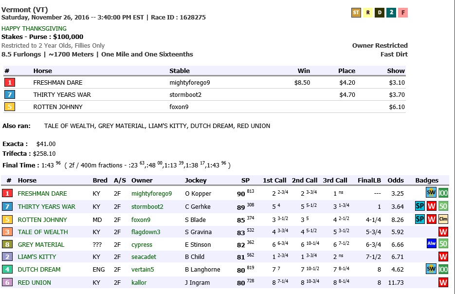 FIRST - MIGHTYFOREGO9 - 10 PLUS 100 CREDITS SECOND - STORMBOOT2 - 7 THIRD - FOXON9 - 5 FOURTH - FLAGDOWN3 - 3 FIFTH - CYPRESS - 1 SIXTH - SEACADET - 50 CREDITS